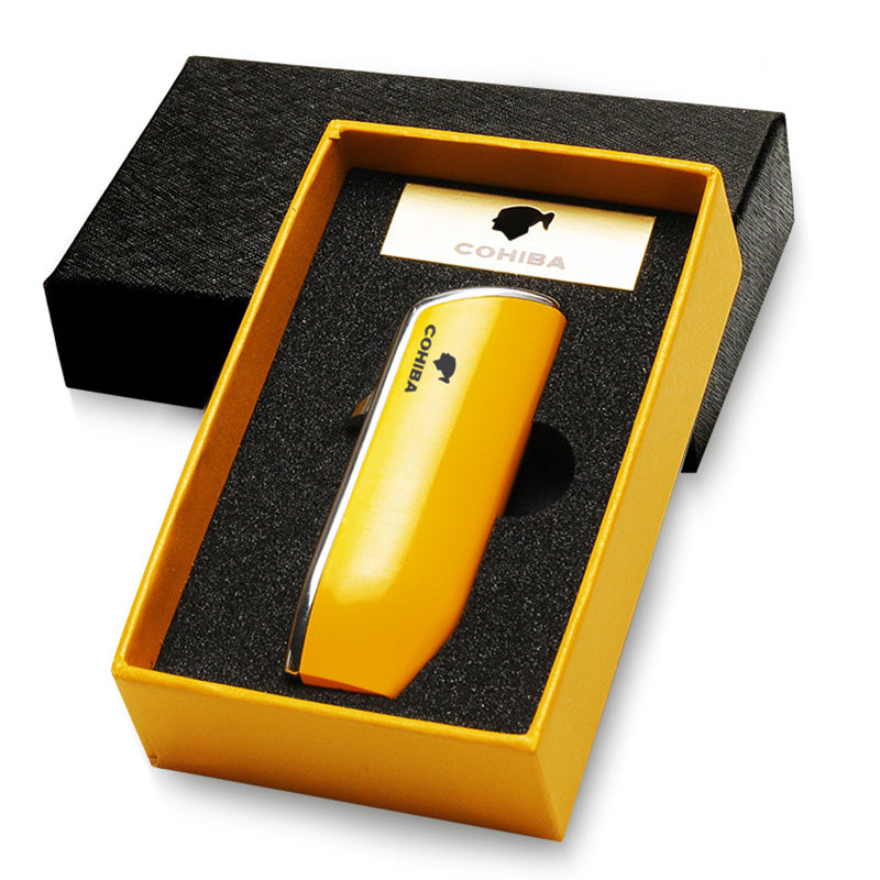 Creative Windproof Cigar Lighter Triple Tube Direct Ignition Blue Flame Metal Portable Lighter with Cigar Drill